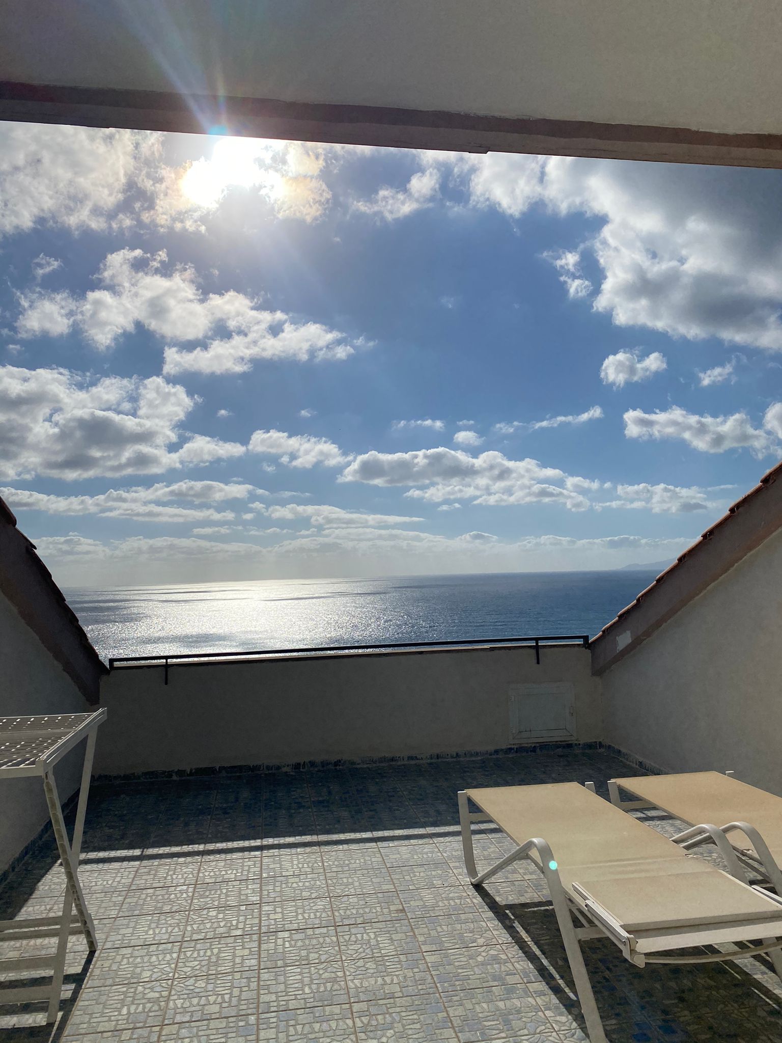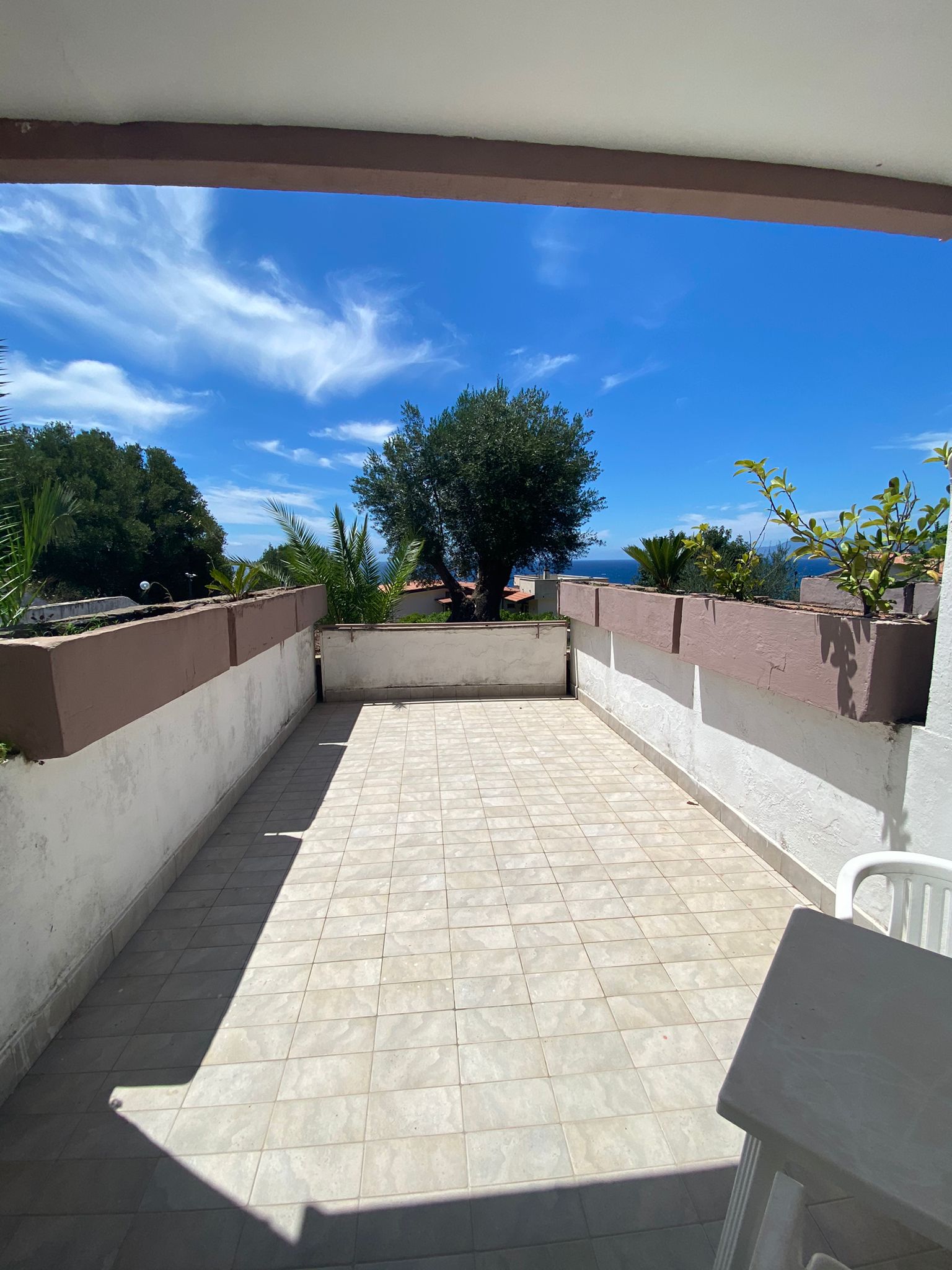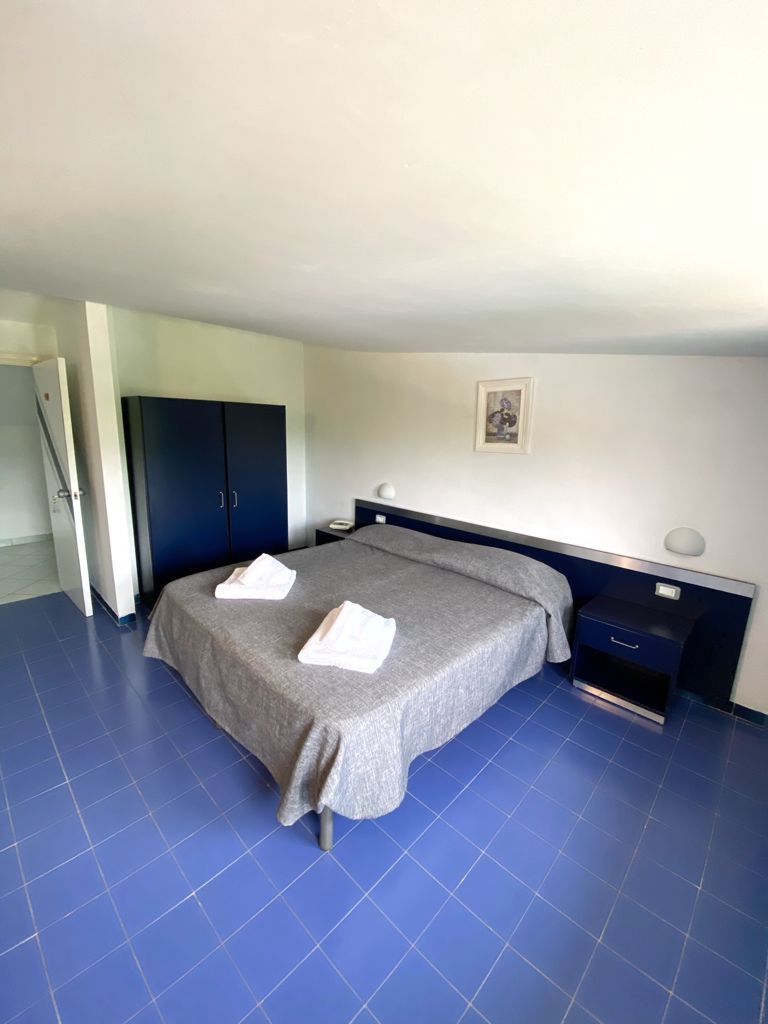 Room with private terrace and sea view. Large and bright, with a double bed and two single beds. Perfect for families.